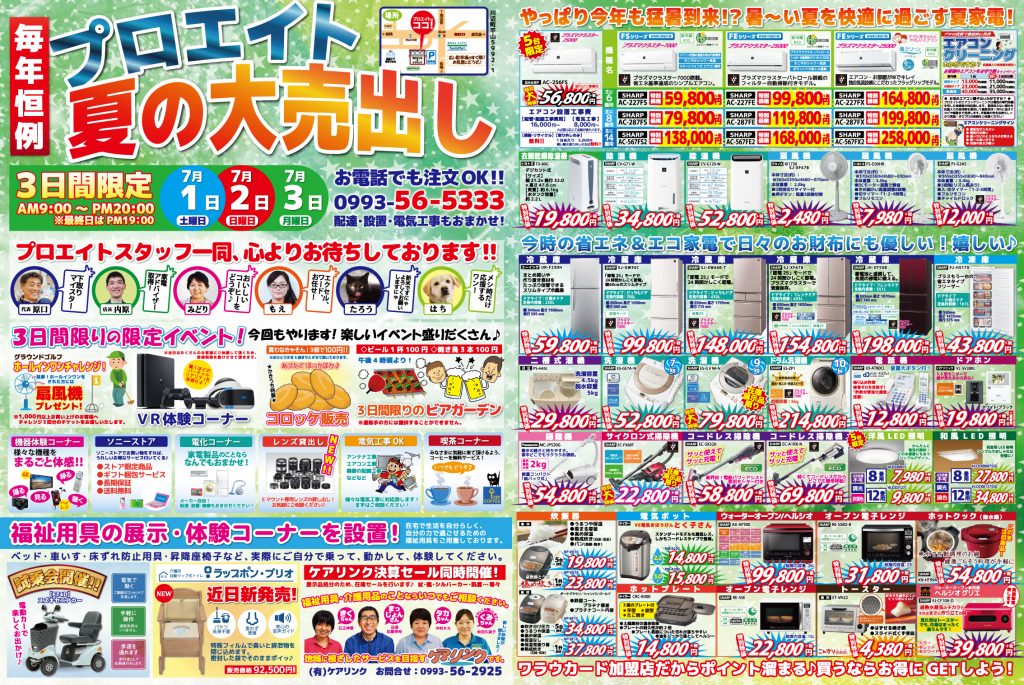 さて、実はタイトルにもあるように、明日からプロエイトでは夏の大売出しが始まります♪