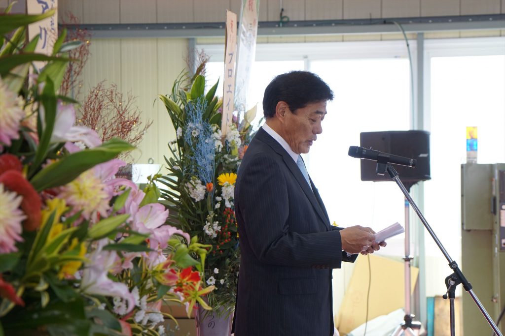 原口晋作工場長からも今後の決意表明をされました。広い工場を作ってもらい(落成式で)今、皆さんがお座りになっているそのスペースこそプロテックの伸び代だと思っています。と力強く宣言されました。